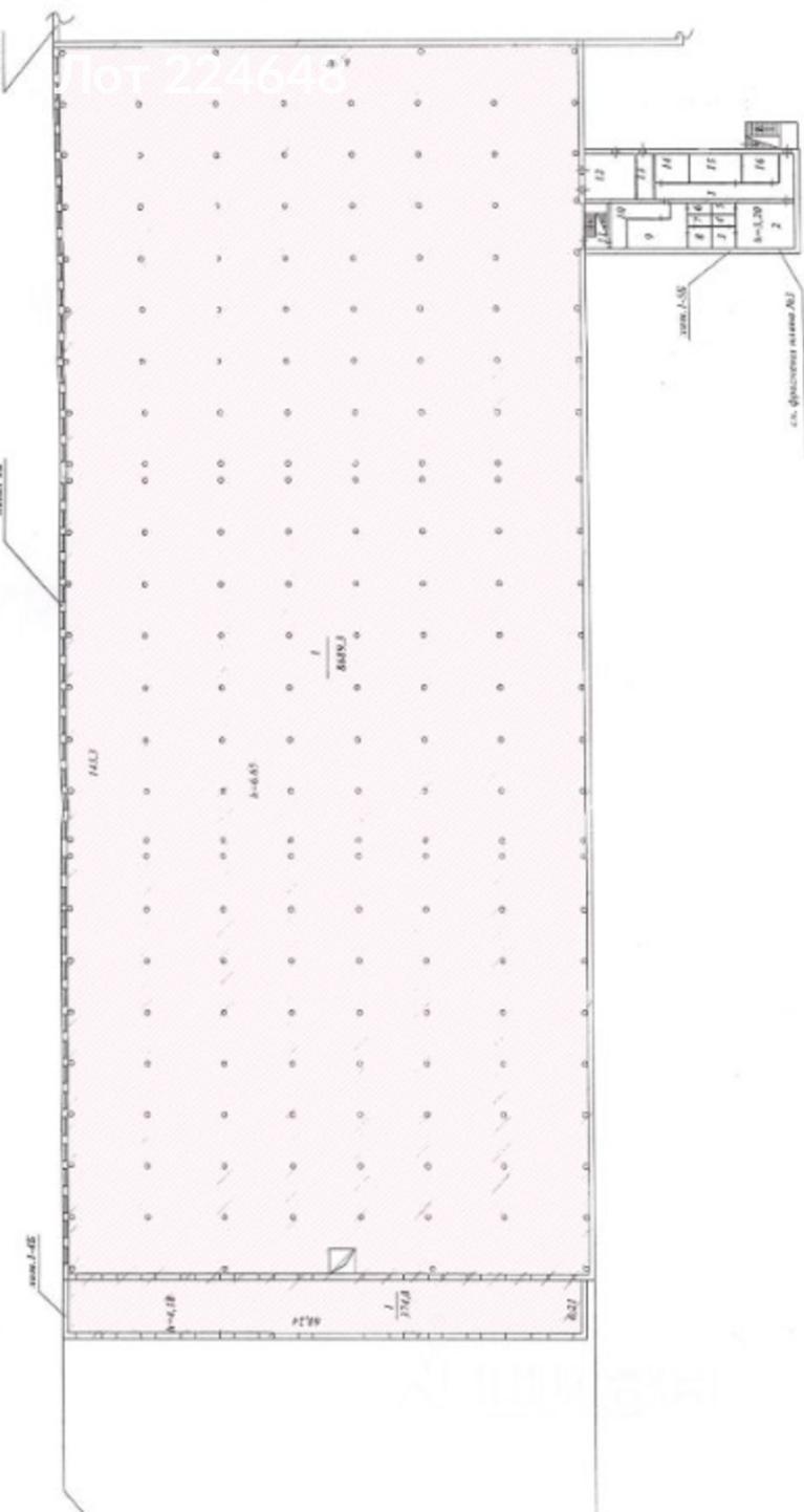 Лот № 224648 Предложение в аренду складского помещения.Площадь складского помещения: 9308.4 квадратных метров.Шаг колонн: 6 на 8 метров.Максимальная нагрузка на пол: 8 тонн на квадратный метр.Количество ворот для загрузки и разгрузки: 13 штук.Здание оснащено всеми необходимыми инженерными коммуникациями, включая системы водоснабжения и водоотведения, отопления и электроснабжения.